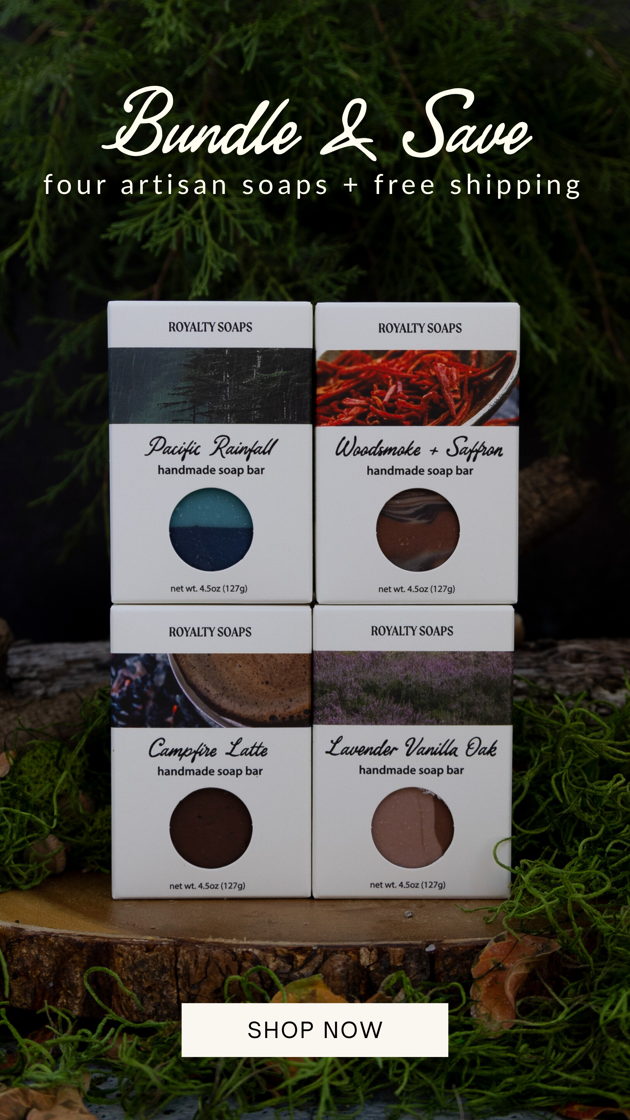 Step into the wilderness with these nature-inspired soaps! Handcrafted with luxury, botanical oils and phthalate-free fragrance, our cold process bars will leave your skin clean and nourished.